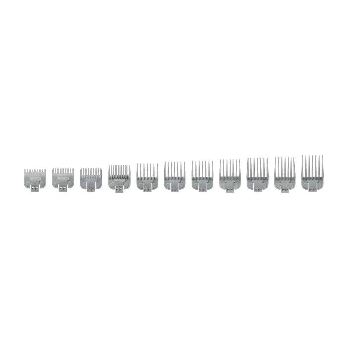 Andis Snap-on attachment comb comes in a set of 11 comb pieces. They come in different sizes, ensuring smooth cuts for different hair length and thickness. The comb sizes in this set includes 0, 0.5, 1, 1.5, 2, 3, 4, 5, 6, 7, and 8. They come in plastic, making them durable and lightweight. It is also resistant to chemical treatment.