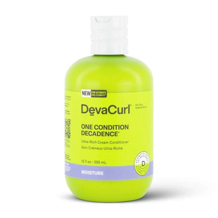 Ultra Curl Quencher Devacurl One Condition Decadence Conditioner is designed for dry, coarse curls, this ultra-rich cream conditioner with a moisture preserving blend helps fight tangles, control frizz and leave curls feeling nourished, soft and bouncy.
