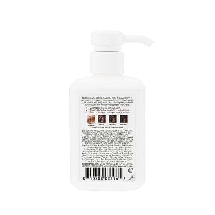 Keracolour Color Clenditioner Colour Shampoo deposits direct dye with every wash, leaving hair clean, soft, shiny and full of lush colour. Add a boost of colour to your client’s hair at the basin as you shampoo and condition! Clients with brightly coloured hair can use Keracolour Color Clenditioner at home to maintain their colour vibrancy. Pigment can last up to 10-15 washes, depending on porosity and pre-lightened level.
