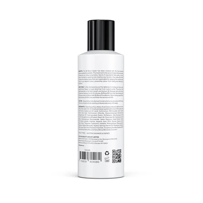 Fortify haircare benefits using the second step in the Limitless bond system: Limitless B2 Bond Sealer. This product is a multi-functional wonder created with the most advanced haircare ingredients available. The resulting proprietary blend works by repairing bonds in the hair cortex. Incredibly, the product also creates new bonds for ultimate rejuvenation. Limitless B2 Bond Sealer doubles down on all the best benefits from Limitless B1 Bond Builder, and there are even bonus perks.