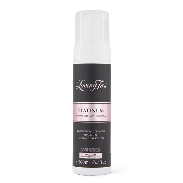 Due to the strength of the formula, Loving Tan Platinum Mousse is suited for experienced self-tanners and professionals only. There are five applications per bottle, which allows maximum value with every purchase. To use, simply add moisturiser to dry areas. Then, apply Loving Tan Platinum Mousse to the mitt and spread in circular motions on the body. Allow 60 seconds until dressing, 30 minutes before wiping excess from extremities, and 8 hours before showering.