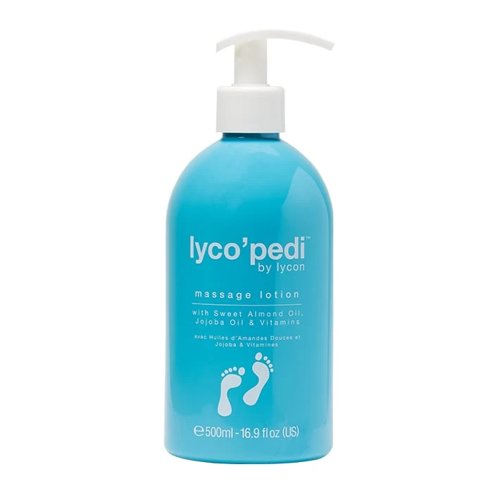 Contains Lemon Tea-Tree and Peppermint with a refreshing and uplifting aroma, while Pro-Vitamin B5, Vitamin E, Sweet Almond Oil and Jojoba Oil work in harmony to effortlessly hydrate and smooth dry skin. lyco’pedi Massage Lotion is ideal for a deluxe foot and leg massage, leaving clients feeling light and fresh with an elegant, silky smooth finish and non-greasy feel.