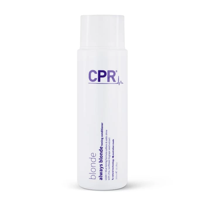 Vitafive CPR Always Blonde Conditioner eliminates unwanted yellow brassy and gold tones. It repairs and strengthens hair from inside out. It reduces hair breakage by up to 80% by binding moisture inside for long lasting condition, softness and shine whilst balancing the hair and reducing oily scalps. Safe for keratin straightening and hair extension systems.